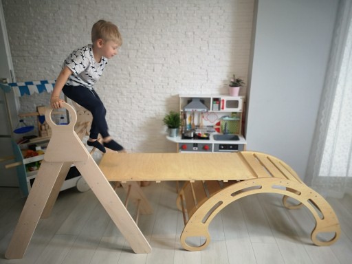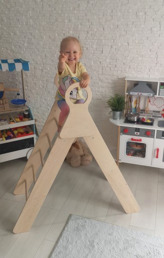 Funkcjonalny trójkąt wspinaczkowy, który zapewni nieskończone możliwości nauki i zabawy dzieciom w różnym wieku.