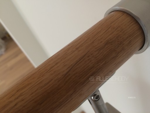 Końce poręczy są cięte na pile - nie obrabiane ani nie szlifowane. W poręczach malowanych występują na końcach otwory po zawiesiach lakierniczych.