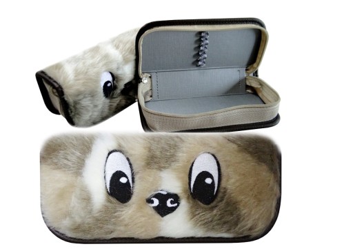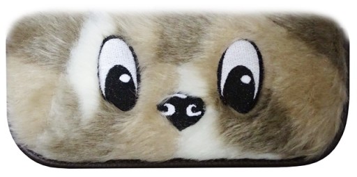 - Piesek na piórniku ma wyszywane oczka i nosek