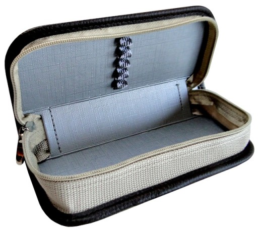 - Po jednej stronie piórnika wszyto gumki, które umożliwiają zachowanie porządku i organizację przyborów do pisania