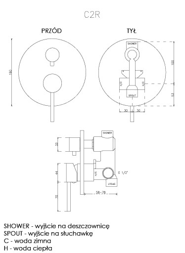 - Mosiężny mieszacz podtynkowy 2-funkcyjny