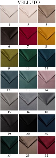 Velluto - gęsta tkanina meblowa typu velwet, niezwykle miękka i aksamitna w dotyku. Tkanina tapicerska bardzo odporna na ścieranie. Idealna do stosowania na meblach.