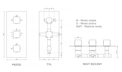 - Mosiężny mieszacz podtynkowy 3-funkcyjny