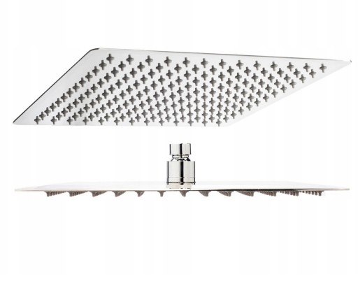 Technologia Ultra Slim zastosowana przy produkcji daje możliwość uzyskania krawędzi deszczownicy o grubości 2mm przy zachowaniu wysokiej odporności na pracę w dużym ciśnieniu roboczym. Zarówno górna jak i dolna część deszczownicy wykonane są z 1mm stali nierdzewnej o oznaczeniu INOX #304, zastosowanie stali tego rodzaju gwarantuje odporność na rdzę oraz uszkodzenia mechaniczne np. zarysowania lub przetarcia. Dysze wyposażone zostały w silikonowe zakończenia z systemem Anti-Calc zapobiegające osadzaniu się kamienia z twardej wody, system ten gwarantuje drożność dysz nawet po wieloletnim okresie użytkowania. Regulowane przyłącze (1/2 cala) deszczownicy pozwala na łatwe i szybkie ustawienie dowolnego kąta natrysku.