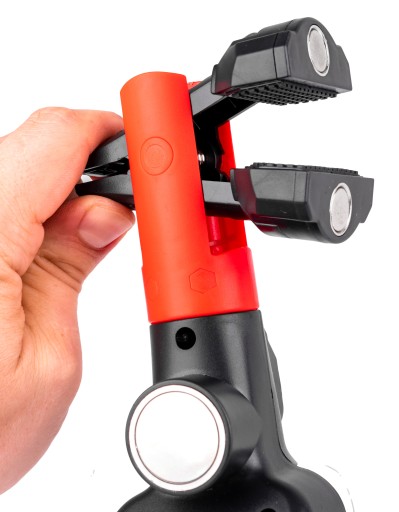 - Wbudowane 2 mocne magnesy na trzonku i 1 z tyłu latarki