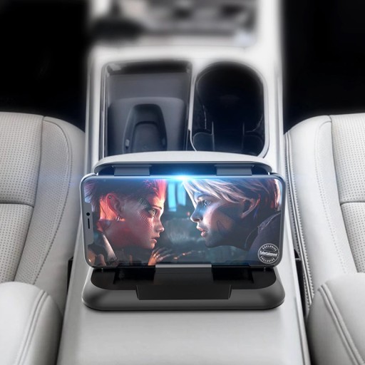 Produkt posiada stabilny uchwyt i jednocześnie elegancki wygląd. Na górnej pokrywie znajduje się materiał imitujący karbon, jeden z najbardziej prestiżowych materiałów do wykończenia wnętrz sportowych samochodów. Pozwala na ułożenie smartforna pod odpowiednim kątem.