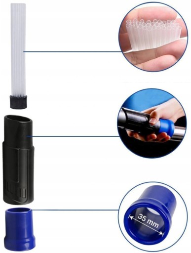 Ssawka wyposażona jest w 30 mini rurek z tworzywa sztucznego, które dotrą w najtrudniejsze miejsca do odkurzenia. Każda rurka ma 3mm średnicy. Końcówka nadaje się praktycznie do każdego odkurzacza, średnica wlotu to 30mm.