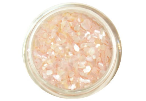 Muszle kruszone, masa perłowa do zatapiania w żelu UV, akrylu, wszelkich lakierach oraz w innego rodzaju substancjach. Muszelki pięknie się mienią i są odporne chemicznie. Dzięki nim, przy małym nakładzie pracy, uzyskujemy efektowne zdobienie.