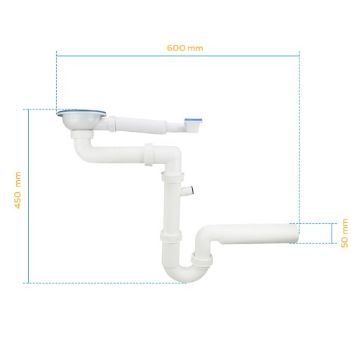 - Skład zestawu: Syfon z przelewem, uszczelki, metalowe sitko