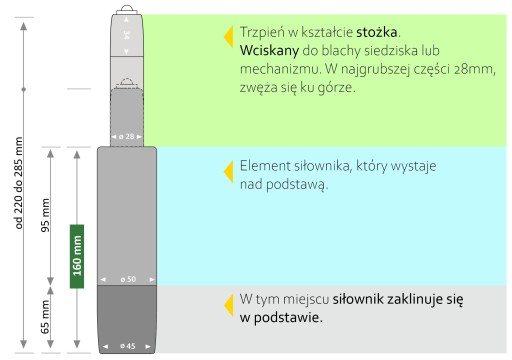 Podnośnik pasuje do większości standardowych foteli czy taboretów od czołowych producentów krajowych i zagranicznych.