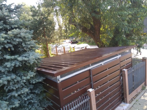 Poszycie stanowią panele wykonane z blachy grubości 0,7 mm w kolorze z podstawowej palety RAL 8017 ciemny brąz.