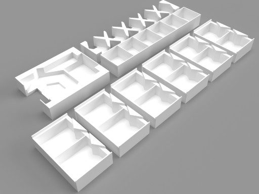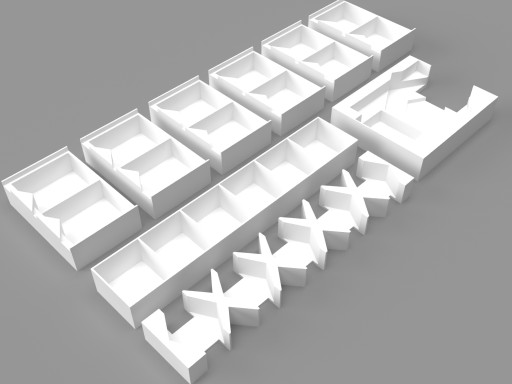 Wszystkie kafelki potrzebne na początku gry takie jak kafelki projektów dla graczy i czarno-białe kafelki materiału umieszczone są w poręcznym organizerze, tuz obok planszetek kołdry.