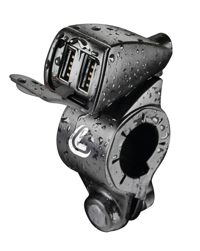 LAMPA Usb-Fix Trek - podwójna, wodoodporna ładowarka USB mocowana na kierownicy