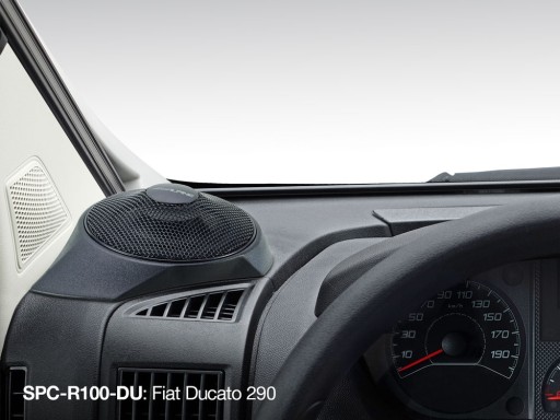 Promieniowe (radialne) głośniki na desce rozdzielczej SPC-R100-DU 12 cm tworzą doskonałą scenę dźwiękową w kabinie i znacznie poprawiają jakość dźwięku pojazdu. Szczególnie wokale wydają się wyraźniejsze podczas słuchania wiadomości lub podcastów. Są kompatybilne z Fiatem Ducato 3, Citroën Jumper 2 i Peugeot Boxer 2.