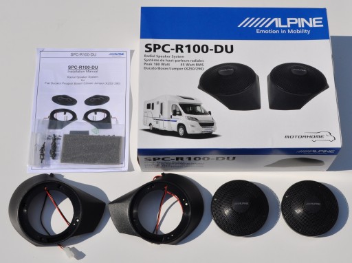 ALPINE ADVENTURE SPC-R100-DU - GŁOŚNIKI RADIALNE KLASY PREMIUM NA PRZEDNIĄ DESKĘ DO KAMPERÓW FIAT DUCATO III, PEUGEOT BOXER II ORAZ CITROEN JUMPER II - PEŁNY NOWY KOMPLET, MADE IN GERMANY