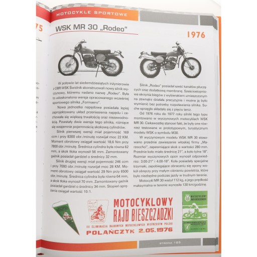 - trzecia z książek G. Doroby poświęcona historii motocykli WSK produkowanych w Świdniku; tym razem autor bardzo szczegółowo prezentuje historię modeli prototypowych, które powstały tylko na deskach projektowych lub w minimalnych ilościach i sportowych (wyczynowych budowanych z myślą o udziałach w zawodach crossowo - terenowych); opisom modeli sportowych towarzyszy wiele informacji związanych z imprezami rajdowymi do których były budowane i w których brały udział, w tym także listy startowe uczestników, listy wyników, trasy rajdów, znaczki i emblematy pamiątkowe itp.;