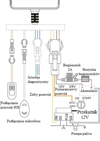 - odcięcie paliwa/zapłonu za pomocą SMS po podłączeniu przekaźnika