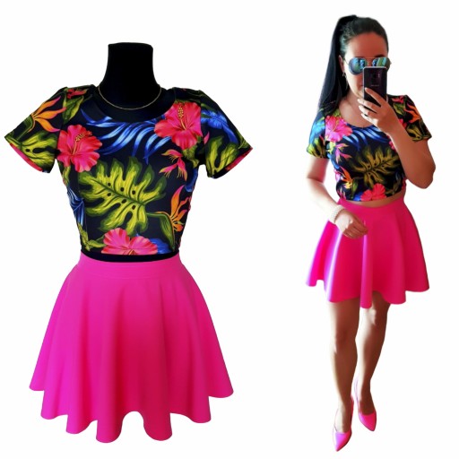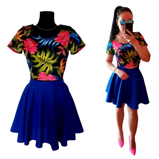 Spódniczki rozkloszowanej z KOŁA + krótkiego topu z krótkim rękawem.