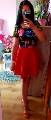 Top w KWIATY + spódniczka Czerwona :