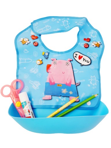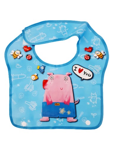 Śliniak posiada sztywną kieszonkę na resztki pokarmu co ułatwia zachowanie czystości podczas posiłków.