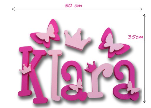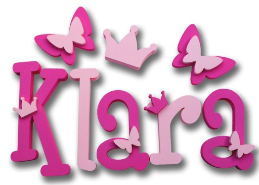 - Dekory do wyboru : motyl, serce, kwiatek, gwiazdka, korona, autko, chmurka, kotwica i samolot (dopasujemy kolorystycznie do wybranego wzoru literek). Do każdego imienia dajemy 3 dekory gratis.