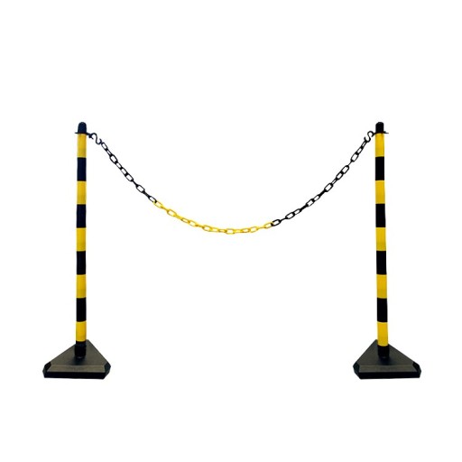 Słupki odgradzające są wykonane z trwałego tworzywa sztucznego. Posiadają trójkątną, gumowo-betonową podstawę. Umożliwiają stałe i tymczasowe wygrodzenia terenu, a żółto-czarna kolorystyka zapewnia dobrą widoczność.