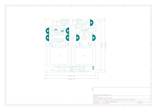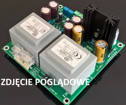 Płytka umożliwia budowę zasilacza symetrycznego LM317/LM337 TO-92 (100mA) o mocy maksymalnej ok. 4W i napięć od 2x3,3V do 2x24V oraz zasilacza LT1085 TO-220 (1,5A) o mocy maksymalnej ok. 4W i napięć od 3,3V do 24V. Napięcia wyjściowe można dobrać za pomocą rezystorów. Na płytce jest miejsce do montażu dwóch transformatorów 6-7 VA.