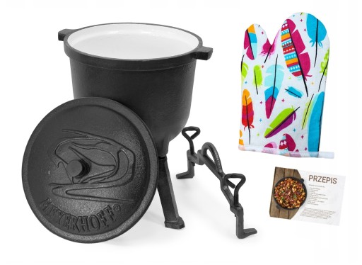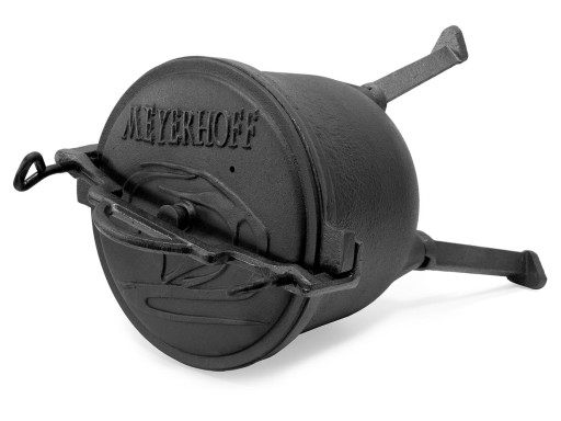 Oryginalny kociołek Meyerhoff wykonany z najwyższej jakości stopu żeliwa odpornego na najwyższe temperatury. Specjalny odpowietrznik w pokrywie, który reguluje ciśnienie wewnątrz kociołka, przez co jest on w 100% bezpieczny. W środku pokryty żaroodporną emalią, która chroni i zabezpiecza wnętrze kociołka, dodatkowo ułatwiając jego mycie i konserwacje (nie ma potrzeby impregnowania po każdym użyciu). Kociołek może stać bezpośrednio w ognisku, a dzięki poręcznemu uchwytowi może być zawieszony również nad ogniskiem. Produkt posiada również odkręcane nóżki, przez co kociołek można umieścić w kominku lub bezpośrednio w palenisku. Dzięki wytłoczeniu na pokrywie masz pewność, że kupujesz oryginalny i bezpieczny produkt.