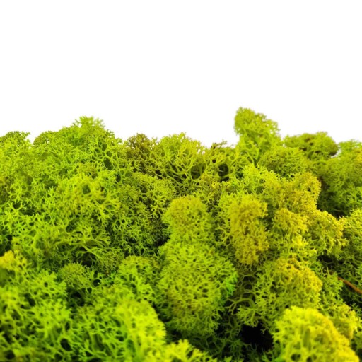 Naturalny Mech reniferowy-chrobotek, pochodzi ze Skandynawii, kolor mchu jest uzyskany z naturalnych barwników. Mech został za preparowany, proces ten umożliwia zachowanie mchu w naturalnej strukturze przez wiele lat. Dzięki procesowi preparowania jest miękki w dotyku przez wiele lat oraz zachowuje swoją świeżość.