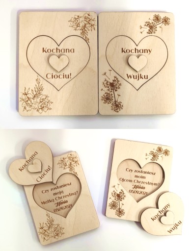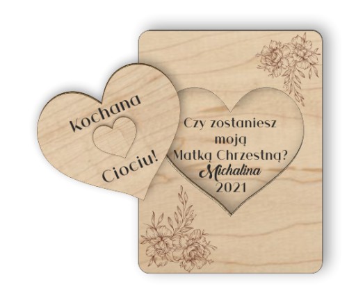 Drewiana kartka która pod serduszkiem skrywa pytanie od maluszka.