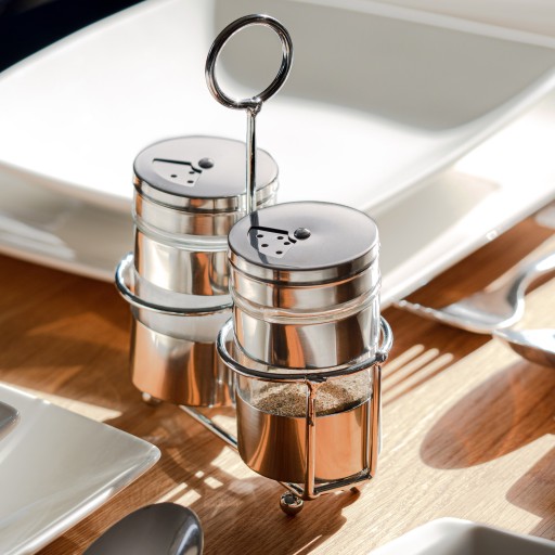 Elegancko wyglądający i funkcjonalny przyprawnik trzyelementowy, który stanowi idealne akcesorium w kuchni. Produkt to nieoceniona pomoc przy przygotowywaniu zup czy wykwintnych dań, a także na stole do wygodnego przyprawiania potraw.