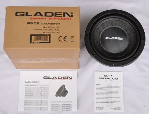 GLADEN RS-08 - TO GŁOŚNIK NISKOTONOWY 20cm/8", Z MOCĄ 175W RMS Z PODSTAWOWEJ SERII GLADEN. WARTY KAŻDEJ WYDANEJ ZŁOTÓWKI I NAJLEPSZY JAKI ZNAMY W KLASIE CENOWEJ DO 500 ZŁ.
