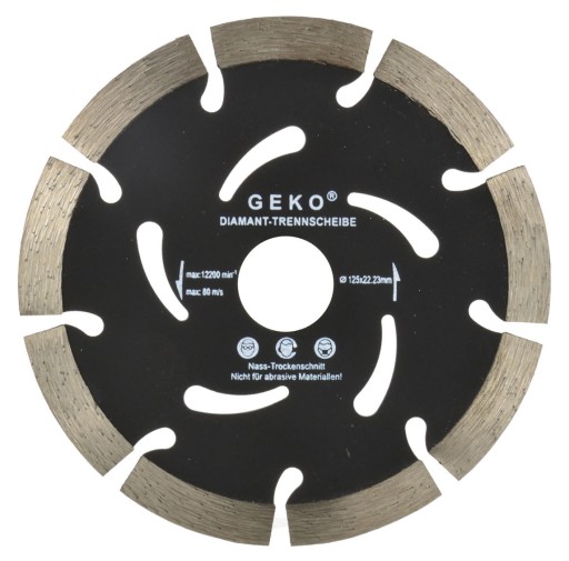 Tarcza diamentowa segment do obróbki materiałów budowlanych typu beton, cegła, kostka brukowa, klinkier, gazobeton, płytki ceramiczne. Tarcza o bardzo dużej zawartości diamentu, co powoduje że ma bardzo dobre osiągi w cięciu, nie przegrzewa się ani nie iskrzy.