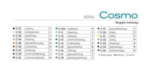 Do wyboru 25 kolorów długopisu COSMO.