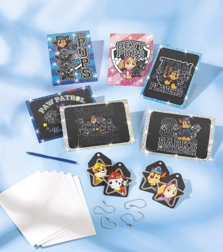 Karty kryją błyszczące obrazki , które należy zdrapać za pomocą dołączonego przyrządu