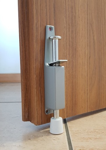 Umożliwia zablokowanie i utrzymanie w odpowiedniej pozycji otwartych drzwi przed samoczynnym zamykaniem. Odpowiednia do drzwi drewnianych, metalowych,aluminiowych, PCV.