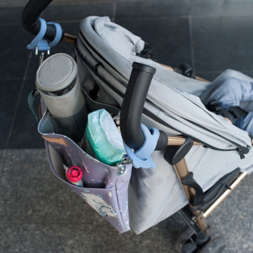 Uniwersalne zaczepy do wózka umożliwią w prosty sposób zaczepienie plecaka oraz torby tak by były pod ręką. Materiał z którego wykonane są uchwyty to specjalne elastyczne tworzywo, które uchroni plecak i torebkę przed zsuwaniem się po rączkach wózka. Dzięki karabińczykom uchwyty pozwolą na szybki i bardzo prosty montaż i demontaż. Pasują do wszystkich toreb, organizerów i plecaków z La Millou dostępnych na naszych aukcjach Allegro.