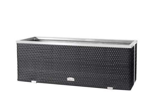 Donica wykonana z wyplatanego technorattanu. Wnętrze wykonane z blachy ocynkowanej. Listwy ozdobne wykonane z polerowanego aluminium.