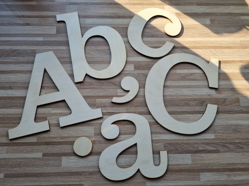 Litery (dostępny cały alfabet), cyfry i znaki specjalne o wysokości