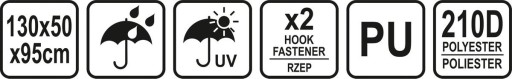 - wymiary rozłożonego pokrowca: 130 x 50 x 95cm (długość x szerokość x wysokość)