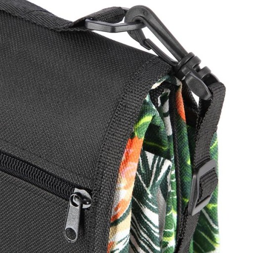 Koc można złożyć w kostkę, a specjalny rzep, jest zabezpieczeniem przed jego przypadkowym rozłożeniem. Po złożeniu, produkt zajmuje niewiele miejsca, a w połączeniu z jego niewielką wagą oraz specjalnie wszytym uchwytem, jest bardzo łatwy w transporcie. Długość uchwytu możemy regulować, tak by dopasować go do swoich potrzeb. Dodatkowo, koc posiada kieszonkę z zamkiem błyskawicznym. Bezpiecznie schowamy w niej klucze, telefon czy olejek do opalania. Kieszonka jest bardzo pojemna i na pewno pomieści wszystkie, niezbędne rzeczy.