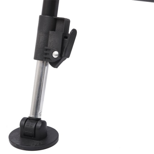 Super wytrzymała, stalowa rama wykorzystuje wysokiej jakości łączniki, posiada regulowane nogi z obrotowymi stopkami o dużej powierzchni oraz pokryte neoprenem podłokietniki.