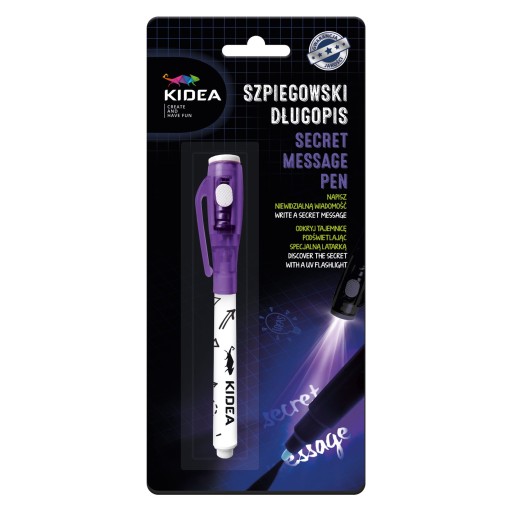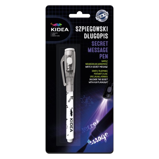 Magiczny długopis z lampką LED posiada tusz widoczny tylko w świetle wbudowanej latarki UV. Tusz podczas pisania jest niewidoczny, aby przeczytać niewidzialną wiadomość należy podświetlić kartkę. To świetna zabawa w ukrywanie informacji przed niepożądanymi osobami i idealny sposób by strzec swoich sekretów. Zasilanie na baterie. Dostępne 2 kolory: fioletowy lub różowy (kolory wysyłane losowo).