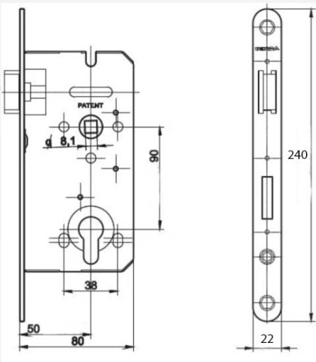 Замок врезной, вставка 90/50 WB L/R GERDA ZW 100