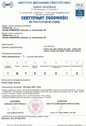 - Atesty i certyfikaty do pobrania: https://gerda.pl/wp-content/uploads/2019/02/ZW100_certyfikat_do_29.05.2021.pdf