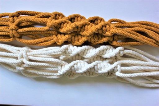 Kwietnik ze sznurka bawełnianego, o grubości 5 mm, zakończony drewnianym kółkiem. Kolor kwietnika ECRU lub inny z wzornika kolorów
