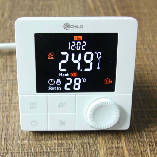 - Termostat sterowany również przez WIFI, duży ekran, bardzo nowoczesne wzornictwo Schild BPW-B8WIFI termostat z dużymm ekranem podświetlanym LED.
