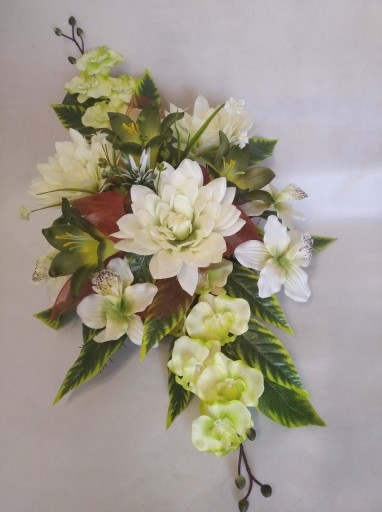 Kompozycja sztuczna (tzw. stroik, ikebana) jest wykonana z sztucznej choiny w doniczce plastikowej co daje jej stabilność.