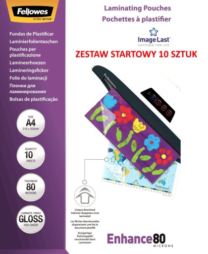 ZESTAW STARTOWY - 10 folii Fellowes A4 80 mic