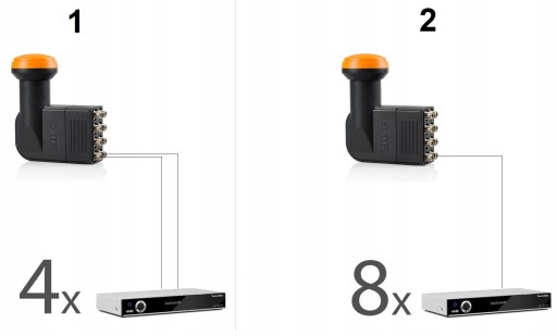 - Umożliwia podłączenie czterech odbiorników satelitarnych